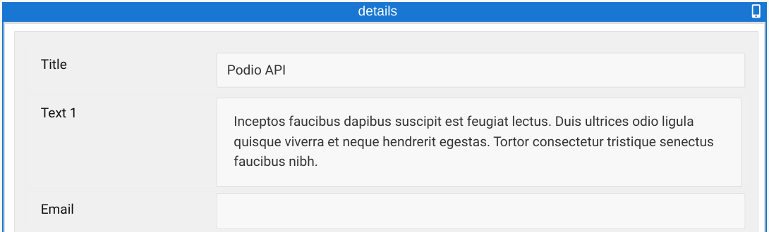 Detail Records provide an individual app or table record, allowing the user to view, edit, or create items. This is the second foundation in master detail views (this is the detail).