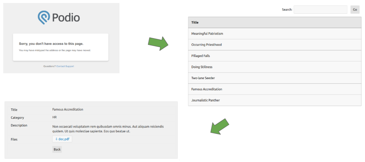 Using ProcFu Apps, you can allow Podio users to access specific apps in workspaces that they have no privileges in, without having to add them to those workspaces.